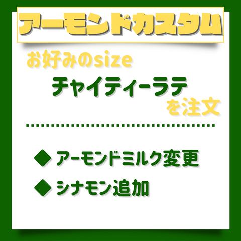 - スタバのおすすめカスタムランキング第6位:アーモンドカスタム<チャイティーラテ>
