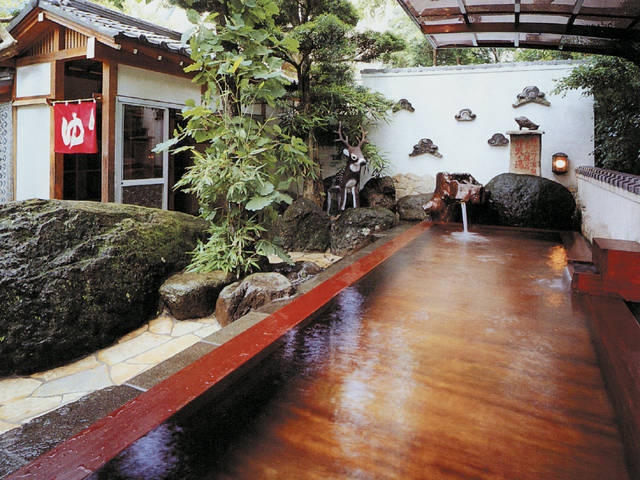 民情素朴な旅館で、外来入浴にも対応しています。男女別内風呂のほか、つるつる庭園露天風呂を完備。しっとりと静けさを味わいたいですね。