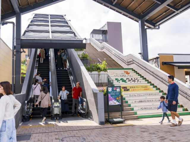 ヒルサイドブリッジを渡ってすぐにあるメリーゴーランドの正面にあるエスカレーターでまた上がります。