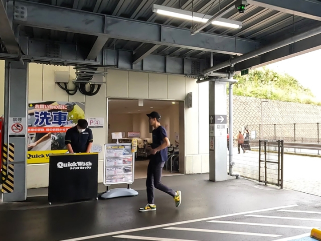Aエリアでは洗車サービス「クイックウォッシュ」の受付や、御殿場プレミアム・アウトレットの方向を示した矢印のマークがあるので目印にしてください。