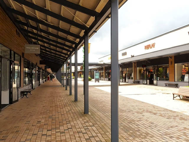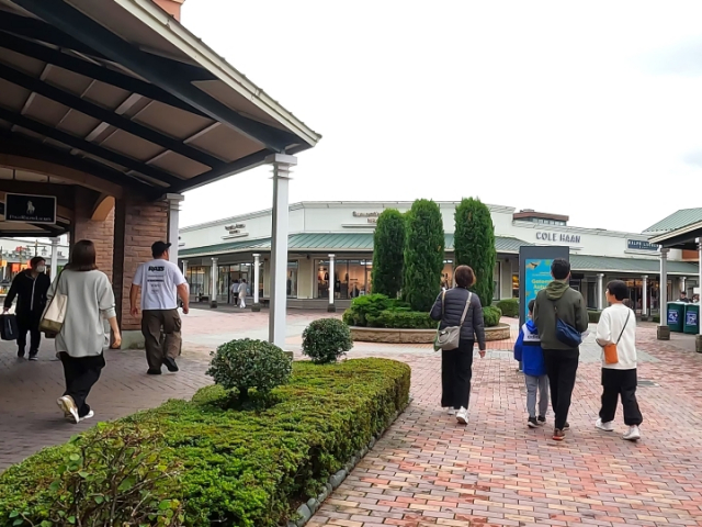 駐車場を出てタイルの道をアウトレットに向かって歩いて行きます。