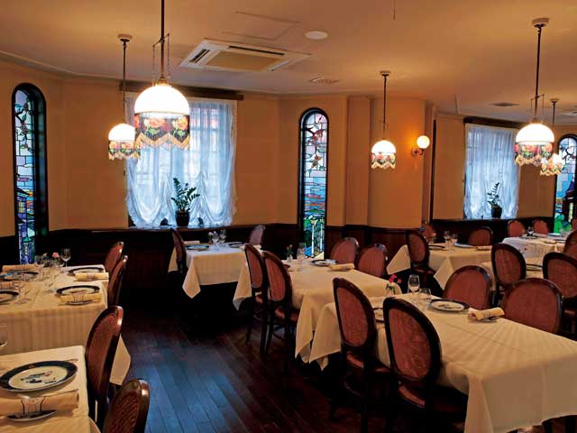 元町裏通りにある白い異人館風の店。1階はクラシックホテル風のレストラン&バー、2階は横浜絵の襖で仕切られた畳敷きの座敷。季節を感じるさまざまな素材を使ったフランス料理を楽しめます。