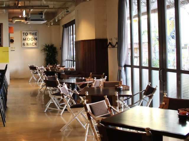 1階はカフェ、2階はダイニングとパリのブラッスリーを再現
