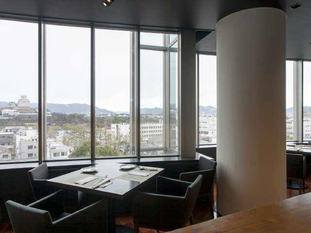 神戸でレストランを展開する「株式会社ゼロフォーム」のグループ店。姫路城を一望する絶景のロケーションで味わえるのは、地元の食材をふんだんに使用した和洋折衷料理のフルコース。野菜や果物は契約農家にオーダーし、魚は市場に足を運び神戸の瀬戸内でとれる新鮮なものを用意。播磨の恵みが詰まった料理の数々に酔いしれてみたいですね。
