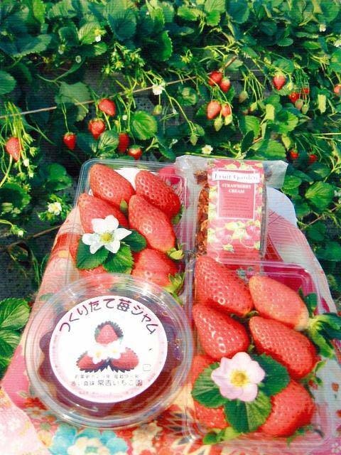 - イチゴ狩り時間無制限食べ放題(1月上旬~5月中旬)=時期・曜日により中学生以上1100~2200円、小学生880~2090円、3歳以上550~1540円、2歳以下無料、お代わり自由練乳付き/メロン狩り(6~9月)=時期により3歳以上1870~2420円/みかん狩り時間無制限食べ放題1kg土産付き(10~12月)=中学生以上1210円、小学生1100円、3歳以上550円、2歳以下無料(いずれも要予約)