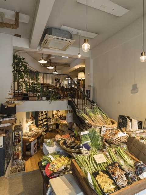 2階はビストロで、富士山麓や伊豆の野菜、熱海沖の魚介など、選び抜かれた食材が引き立つメニューを楽しめます。夜はオーガニックのワインやビールも。
