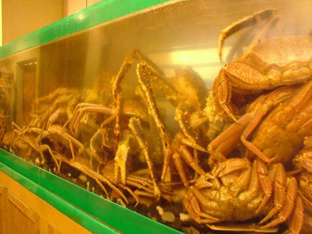 - タラバガニセイロ蒸し=時価(大)・時価(中)/カニ刺(ズワイ)=2376円/海鮮盛り(4人前)刺身=2700円/さしみ定食=1080円/天ぷら定食=1080円/かに鍋=4320円/毛ガニ=4860円/ズワイセイロ=4860円/