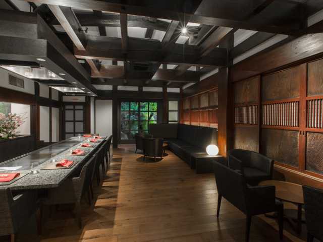 箱根ホテル小涌園で厳選された食材を本格鉄板焼きで堪能。建物は国登録有形文化財建造物に登録されている、旧家を移築した重厚な入母屋造り。全席カウンターで、目の前で焼き上げてくれますよ。