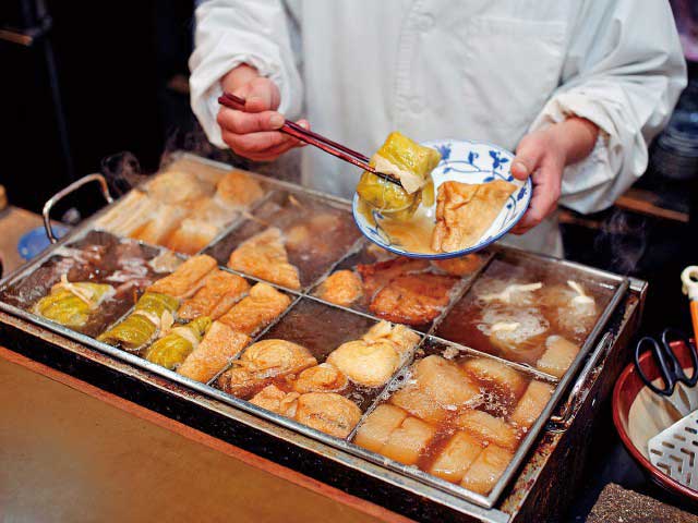 懐かしい味が楽しめるおばんざいや、近海や宍道湖の鮮魚を使った料理がそろう店。葉物野菜が入った松江ならではのおでんが人気です。おすすめのネタは店主手作りの野菜巾着やロールキャベツ、つみれ。