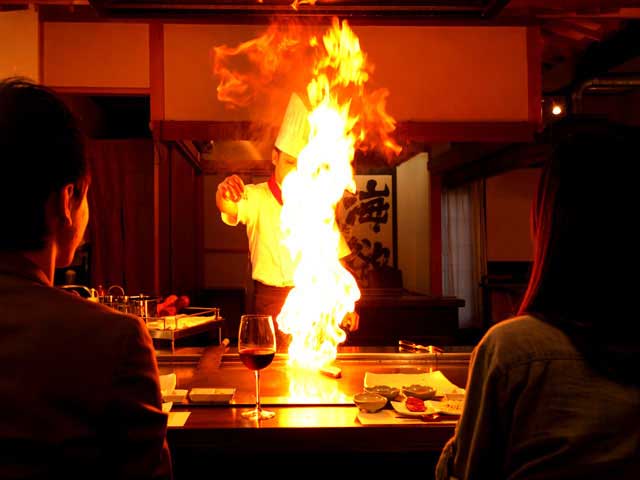 那須高原で育った最高級・那須和牛と、魚河岸直送の魚介、契約農家から直接仕入れた野菜を目の前で調理。高温で一気に焼き上げ、素材本来の旨みを凝縮した味は感動ものですよ。
