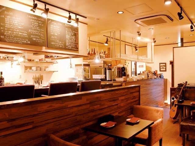 落ち着いた雰囲気のビストロ。店内の黒板にはその日のおすすめ素材やメニューが並びます。相談すれば調理法や味付け、量など客の好みに合わせて仕上げてくれるのも嬉しい。