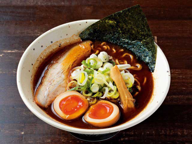 東京ラーメンショー2014で第1位。通算5度目の日本一に輝いた名店。魚醤を長時間煮込んだ秘伝の黒醤油が黒さの秘密。もちもちの自家製麺ととろけるチャーシューも人気ですよ。