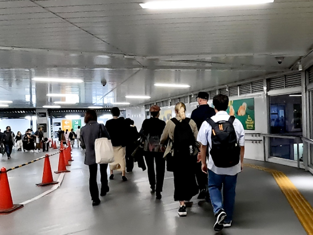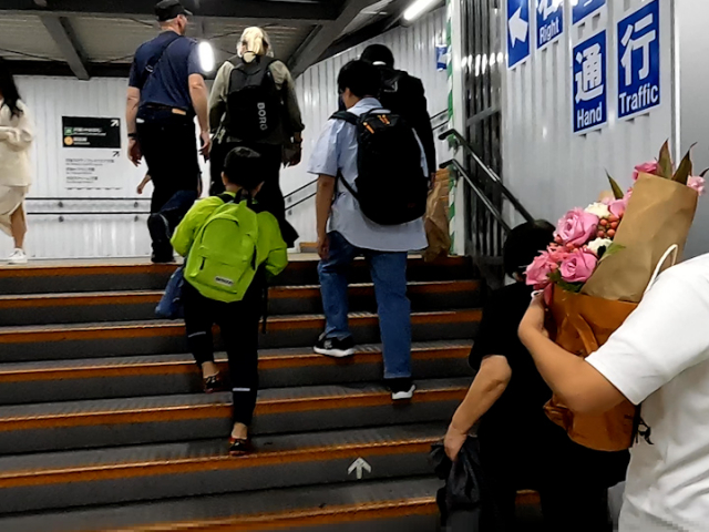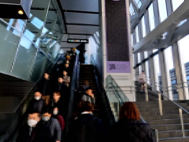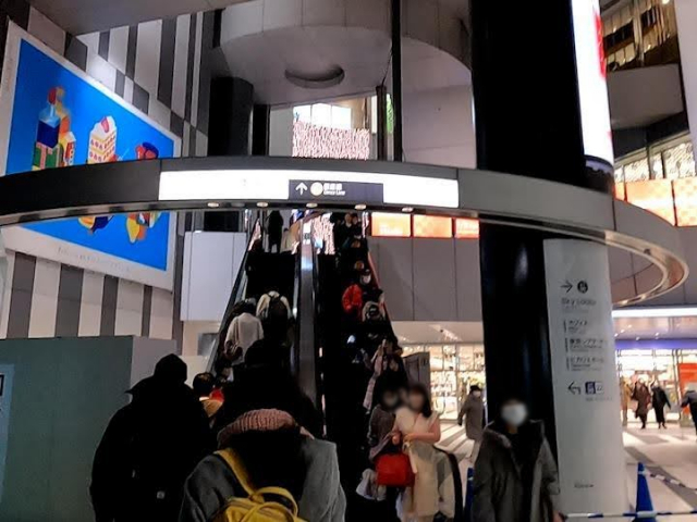 エスカレーターを降りたら折り返し。もう一度、上りのエスカレーターもしくは階段を利用しましょう。