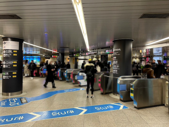 少し進んで右側。銀座線のスクランブルスクエア方面改札に到着です!