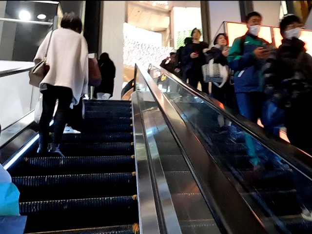 エスカレーターを使い、地下3階から地下2階へと上がります。