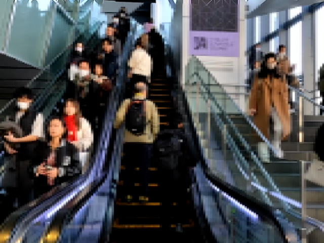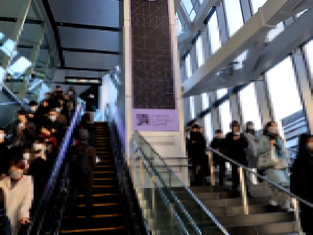 エスカレーターを降りたら折り返し。もう一度、上りのエスカレーターもしくは階段を利用しましょう。