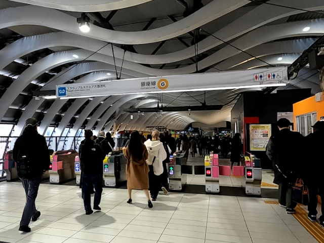 少し進んで右側。銀座線のスクランブルスクエア方面改札に到着です!