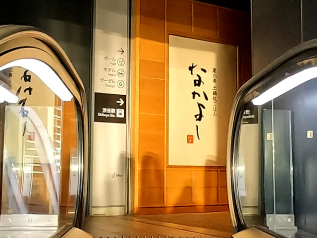 横断歩道を渡ったすぐ先、渋谷駅の案内があるエスカレーターを上ります。