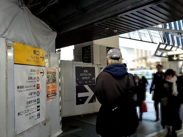 エスカレーターを降りたら「→渋谷駅」という案内表示に従い、右に曲がります。