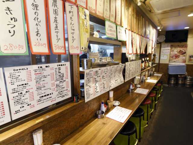ハムカツで有名な立ち飲み屋で、ビールに合う味の濃いつまみがたくさん。もつメニューの豊富さに、気付くと酒が止まらなくなりますよ。