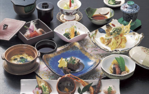 - 松花堂弁当(昼のみ)=2682円/懐石料理=5250~10500円/活カニコース(冬期)=14300円/活とらふぐコース(冬期)=11080円~/松葉がにコース(冬期)=15163円~/(サービス料別8%)