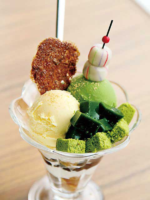 - 煎茶(ふかみ)=600円(ホット)・650円(アイス)/抹茶パフェ=680円/抹茶みつラテ(ホット)=500円/ケーキ=270円~/