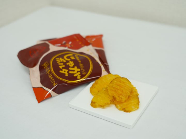 Calbeeと東京ばな奈がまさかのコラボ!進化系ポテトチップスと呼ばれる「じゃがボルダ」は、外はパリパリ、中はサクサクの食感が特徴です。和食の名店「広尾 小野木(おのぎ)」が監修しており、味付けはあっさりめ。