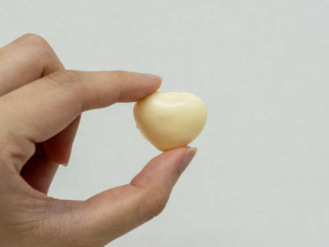 口に入れるとホワイトチョコの優しい味わいが口に広がった後、フルーティーなグミの風味が感じられます。ホワイトチョコレートと程よい酸味のグミは意外にもマッチ。