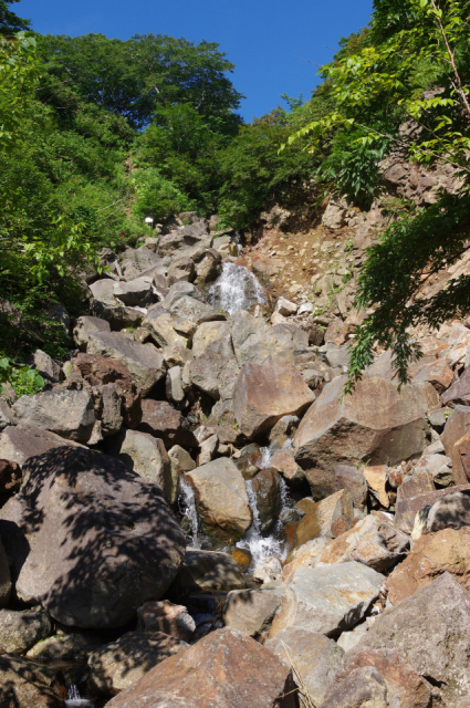 そこで混雑するコースが苦手な私は、かつて山岳信仰の登拝路だった御沢表掛コースを歩くことにしました。本来の登拝路は表掛から栗駒山頂を経て裏掛を周回するコースですが、コースタイム8時間強のハードコースなので、今回はもう少し難易度の低い山頂から中央コースを下ることにしました。御沢コースは約2Kmの沢登りや、盛夏まで残る雪渓、そして様々な高山植物に出会える、栗駒山の良さを凝縮したコースです。