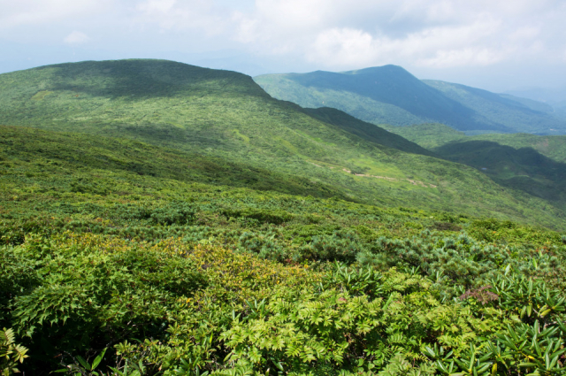 しかしながら登山者の多くが宮城県側のいわかがみ平や、岩手県側の須川温泉を起点に短時間で登れるコースに集中しており、行動時間が長く、標高差も大きい他のコースは敬遠されているのが実情です。そんなロングコースこそ、ブナの原生林に包まれた、昔から変わらぬ静かな栗駒山の良さを味わえるのですが・・・。