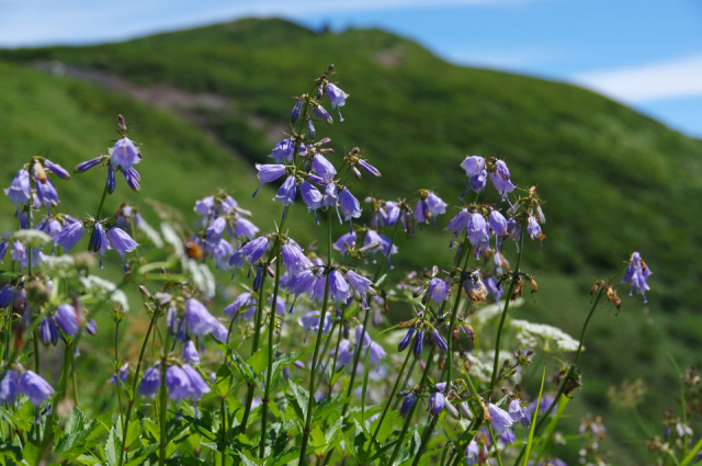 ハクサンシャジンは、乾いた日当たりの良い尾根上に群生しています