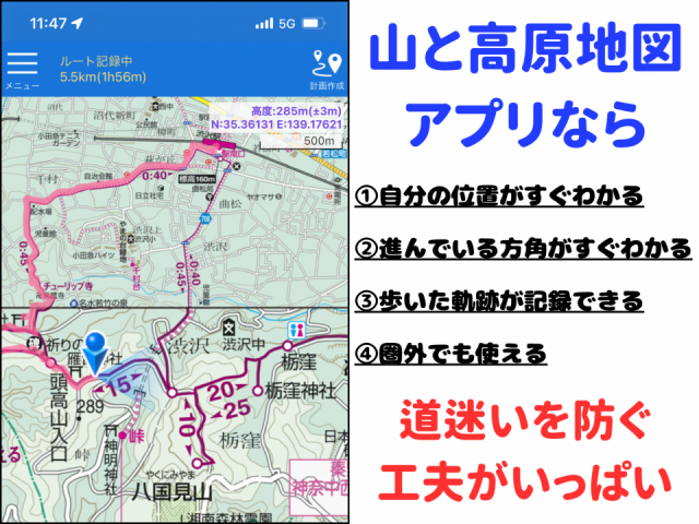 道迷い対策には山と高原地図アプリ!!インストールしてから登山へいこう