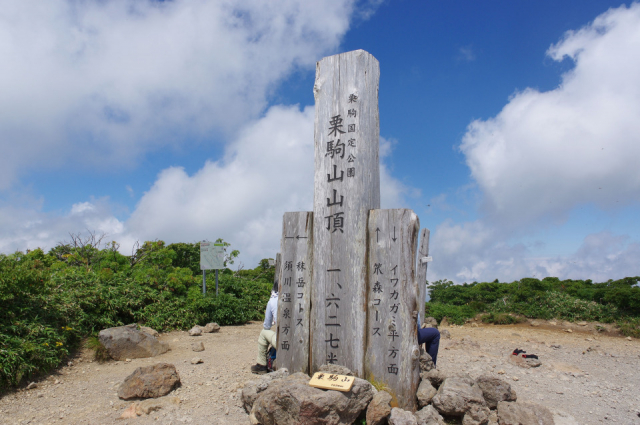 栗駒山は独立峰なので晴れて空気が澄んだ日なら、山頂から岩手山、早池峰山、焼石連峰、鳥海山、高松岳、虎毛山、神室山、月山、船形連峰、蔵王山など東北地方の名峰が一望できます。この日は真夏にもかかわらず涼風が吹き抜けていたので、近場の景色を眺めながらのんびり休みました。