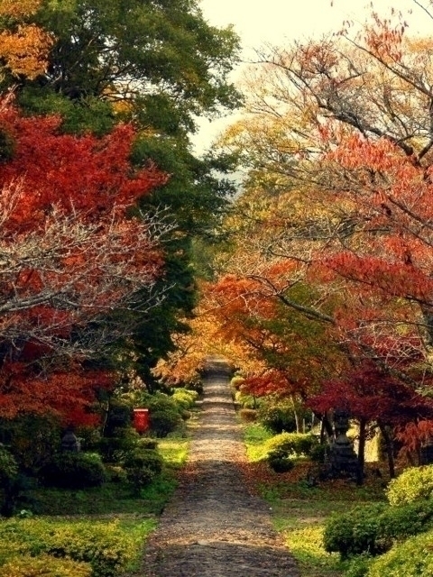 山頂へと続く参道を紅葉が美しく彩る