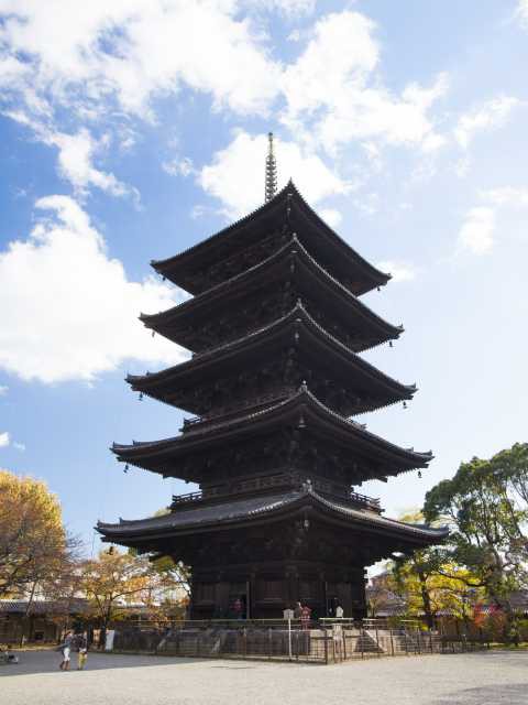 東寺は、真言宗の総本山で、厄除けや開運祈願に多くの参拝者が訪れるスポットです。五重塔は日本一の高さを誇り、京都のシンボル的存在。