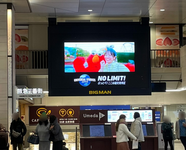 梅田の待ち合わせスポットとして古くから親しまれる場所で、紀伊国屋書店の東側(阪急京都線本線側)入り口前にあたります。「ビッグマン」とは大型ビジョンのこと。映像を観ながら待ち合わせができるので、スマホがない時代には暇つぶしにもなったことでも人気のスポットでした。梅田の待ち合わせ=「ビッグマン」というイメージは今も変わらずで、誰にでもわかりやすい待ち合わせスポットです。