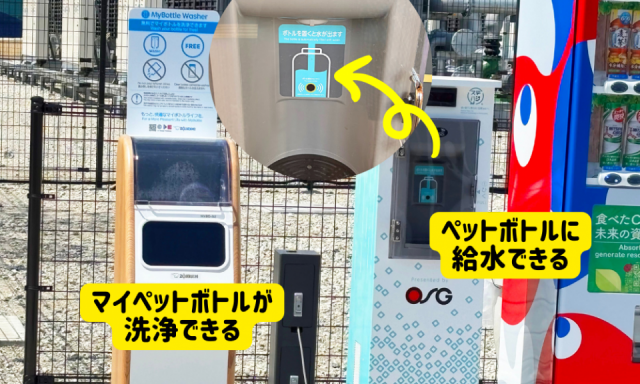 ペットボトルやマイボトルを洗って水を補給する機械があるので、ぜひ利用しましょう。大屋根リングの下をはじめ、会場内各所に設置されています。