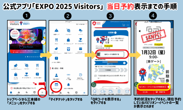 当日、会場に入って10分後に操作が可能となる「当日予約」。これを使いこなせば思いのほか多くのパビリオンをめぐることができます。