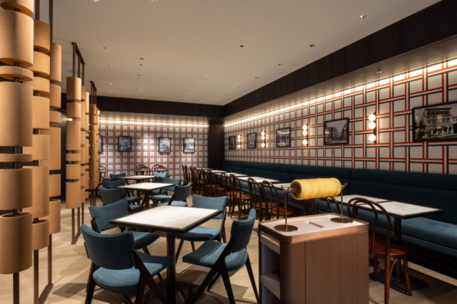 ユーハイムチェックが印象的な店内は、シックでカジュアルな雰囲気