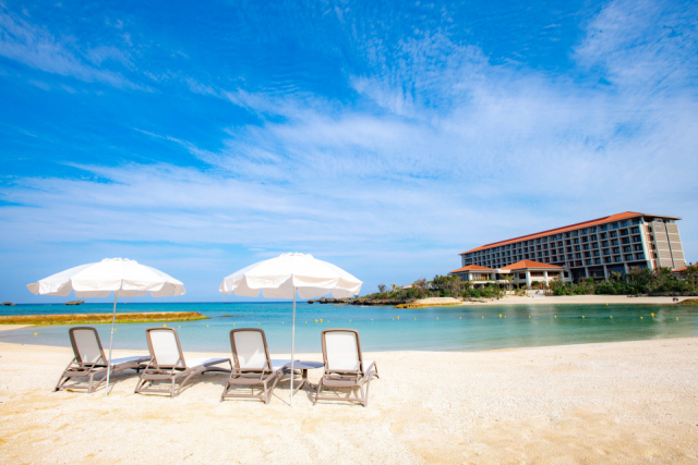 ジャングリア沖縄から車で約20分。「沖縄美ら海水族館」に隣接し、全室オーシャンビューの絶景が自慢。天然温泉も楽しめ、リゾートステイを満喫できます。