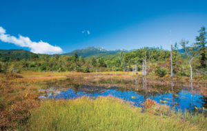 田代湿原&田代池|連なる穂高連峰を望む緑美しい湿原