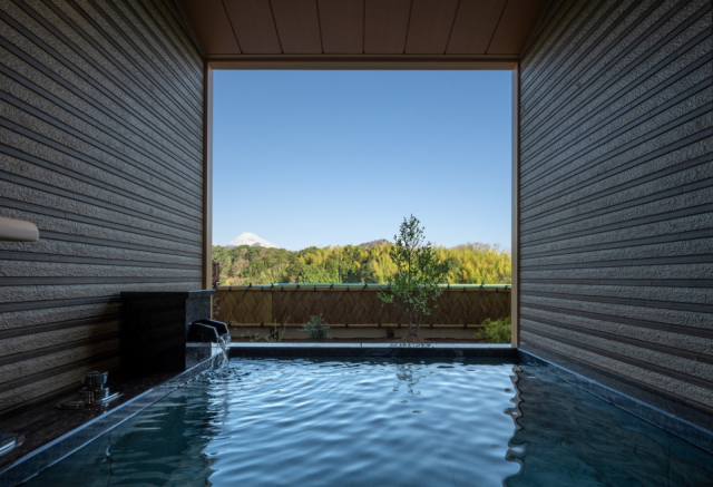 山々を眺めながら「黄金の湯」と「白銀の湯」では贅沢なリラックス時間を過ごすことができます。ナチュラルイオンを利用したタイプなど3種類の貸切風呂もおすすめです。