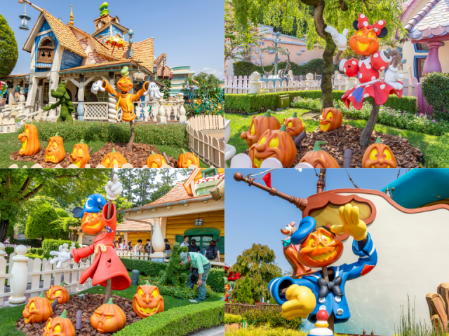 トゥーンタウンにも、パンプキンのデコレーションが登場。ミッキー、ミニー、ドナルド、グーフィーのかかしのほかにも、ゴーストやパンプキンのデコレーションもあるので、探してみてください。
