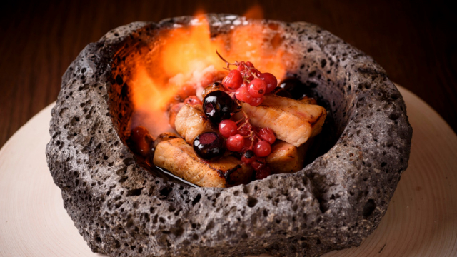 富士山の溶岩プレートを使用した料理や薪と溶岩石を使った日本料理も自慢。富士山と森を近くに感じながら、特別な滞在を満喫しましょう。