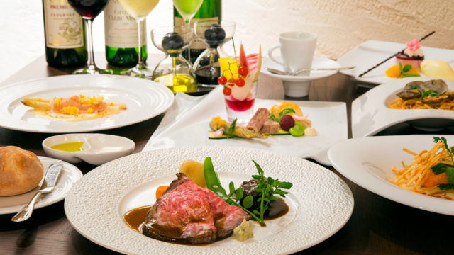 旬を取り入れたコース料理には地元の食材がふんだんに使われていて、お腹はもちろん心も満たされるディナータイムを楽しめます。