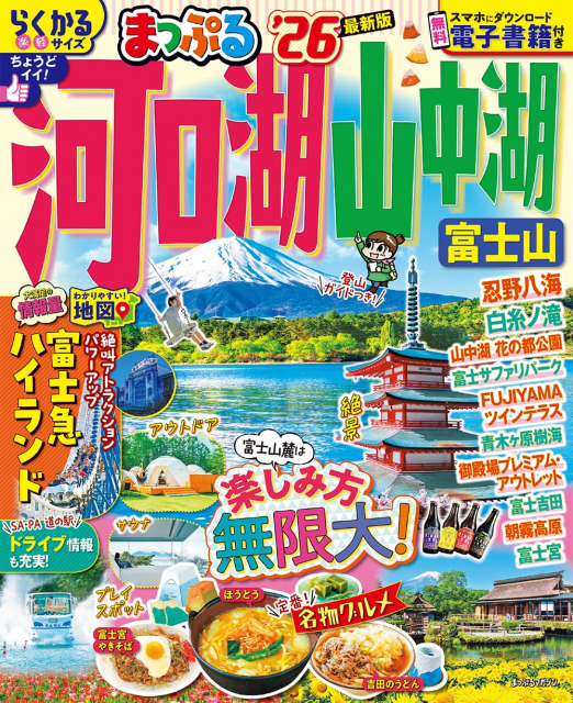 各スポットの詳しい内容は「まっぷる 河口湖・山中湖 富士山’26」でもご紹介しています。ぜひ、本を片手に富士山観光をお楽しみください!