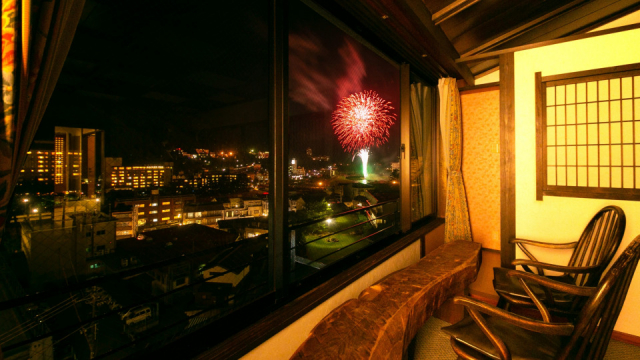 全室に室内温泉風呂を備える臨川閣の客室や巨岩と樹木に囲まれた、山水閣の野天風呂「龍神の湯」など魅力的な施設が豊富です。