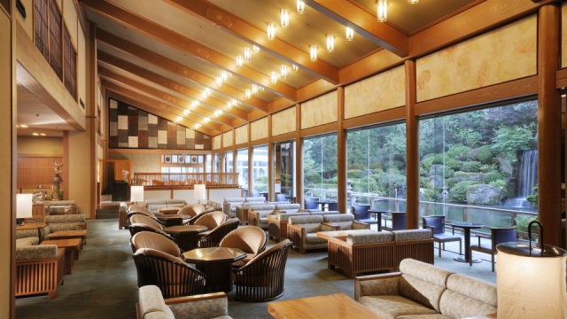 芸術品の数々が飾られていて、美術館のような館内も魅力です。大きな窓から日本庭園を望むロビーは開放的で、旅の疲れが一気に解れていくようなつくりになっています。