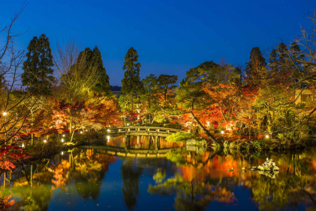 修復を終え、5年ぶりにライトアップを再開した「青蓮院」をはじめ、雲海から国宝建築が浮かびあがる「仁和寺」、プロジェクションマッピングを駆使した「元離宮二条城」、そして京紅葉のツートップ「東福寺」と「永観堂」。