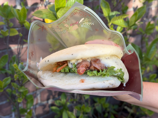 東京ディズニーシーの「ニューヨーク・デリ」では、ローストビーフとトリュフ香るマッシュポテトをはさんだサンドウィッチが楽しめます。クリスマスのごちそうのような一品を楽しんでみて♪